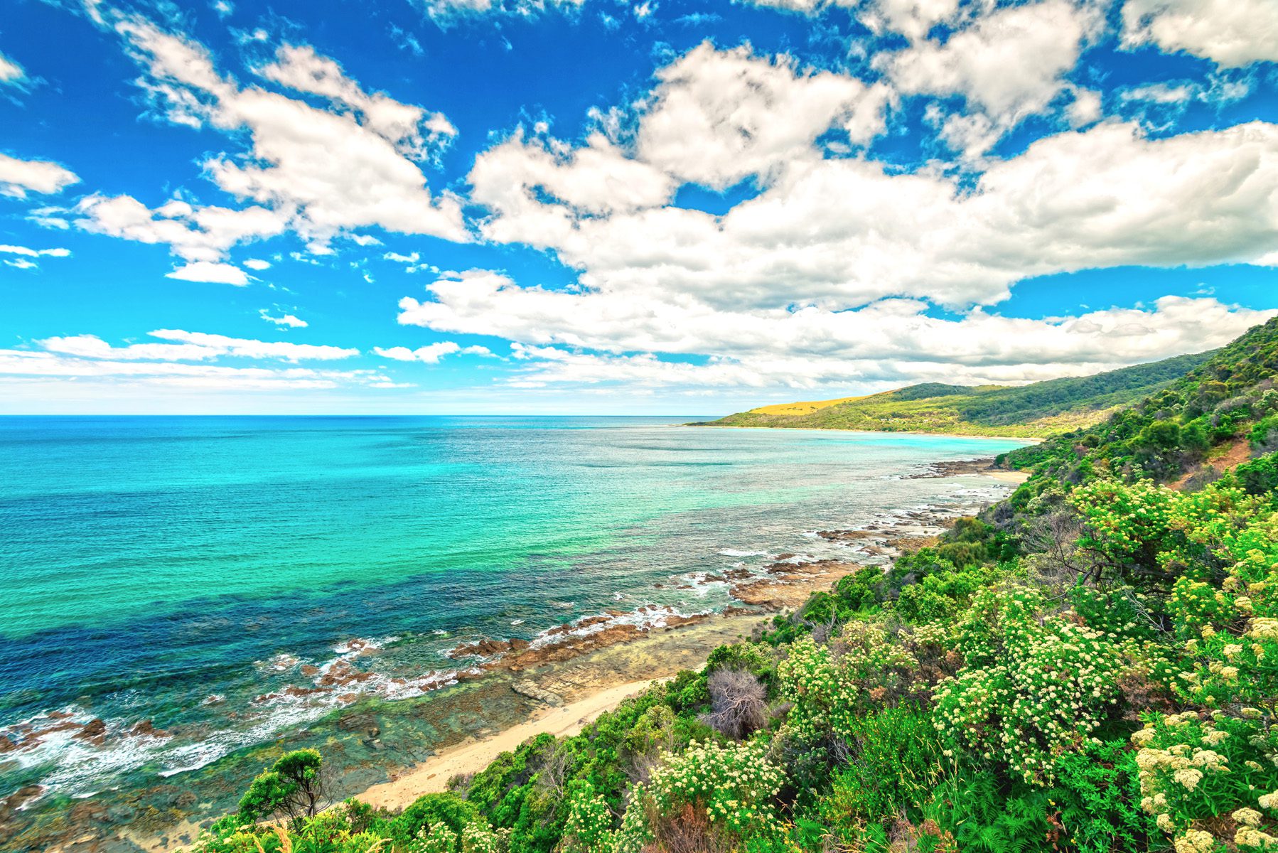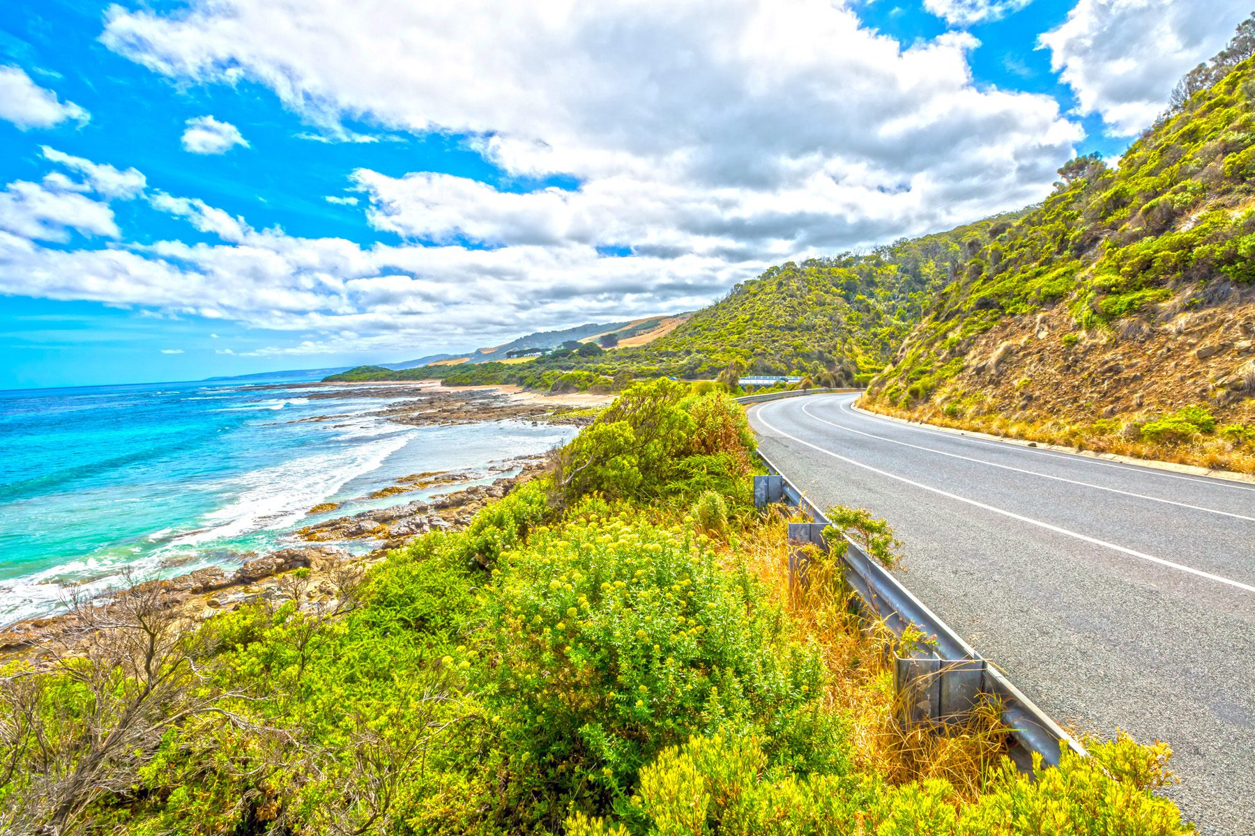 Back on our bikes, an impossibly beautiful ride along a tall ridge twists through miles of fragrant forest before emerging from the native bush for a traffic-free descent through Wild Dog Preserve to reach the village of Apollo Bay, where your choice of lunch at the Fishermen’s Co-op depends on the morning’s catch.