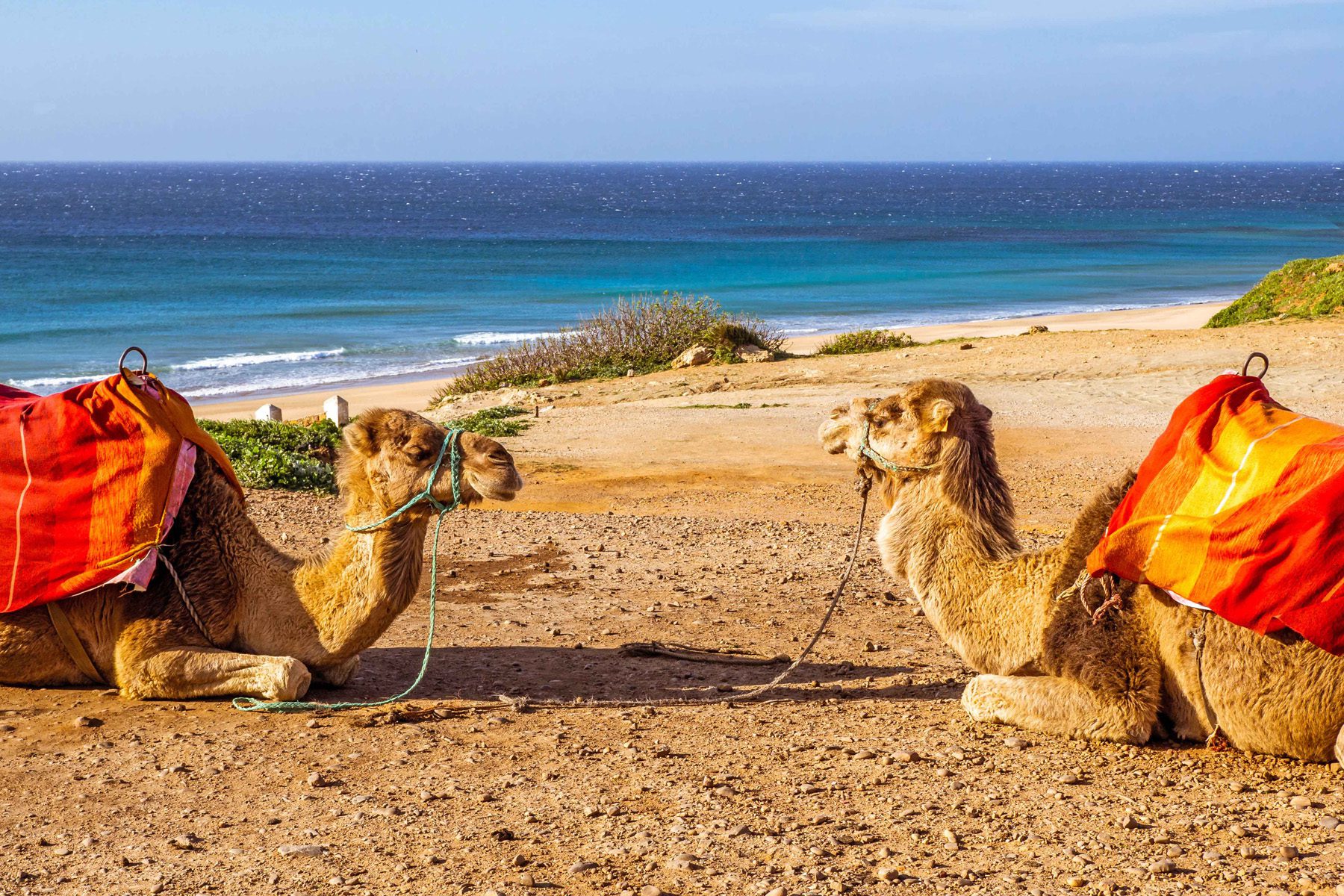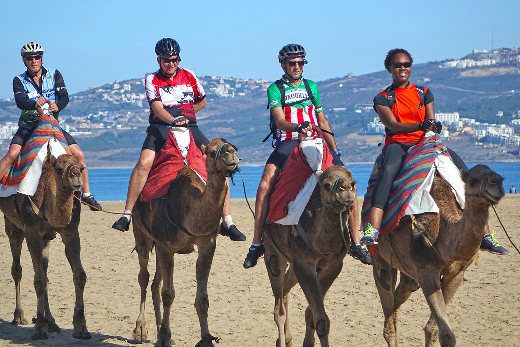 Our favorite local ambassador will again hop on the back of one of our tandems to provide a multi-stop “highlights tour” of modern Tangier. At an oasis shared by all of today’s riders, don’t remove your helmet before climbing aboard a camel caravan for a short jaunt through coastal dunes.